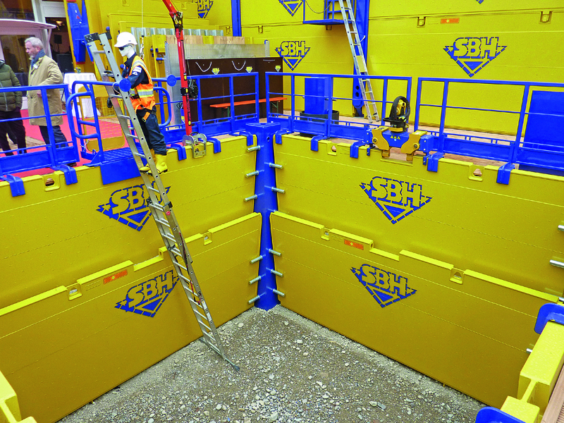 Die im Vergleich zum Berliner Verbau doppelte Feldlänge erfordert bei gleicher Grabenlänge 50 % weniger Träger und 50 % weniger Anker oder Gurtungen. Dies ermöglicht eine höhere Ein- und Ausbauleistung mit leichtem Gerät und macht das System besonders wirtschaftlich. Mit dem SBH-Träger-Verbausystem können Kanalgräben und Schächte von über 10 m Tiefe verbaut werden. Durch die spezielle Einbautechnik finden Grundwasserabsenkungen mit Vakuumpumpen gestaffelt in wesentlich größeren Tiefen als bisher statt. Als interessanten Effekt nennt SBH, dass beim Ziehen der Verbauplatten aus großen Tiefen unvergleichlich geringe Rückstellkräfte auftreten. Das System habe seine Praxistauglichkeit kurz vor Beginn der Bauma auf ersten Baustellen unter Beweis gestellt. Als umweltfreundlich gelte es nach Anbieterangaben obendrein. Während das bei der Trägerbohlwand eingesetzte Holz nach dem ersten Einsatz entsorgt werden muss, gelte die Träger-Verbauplattenwand, so SBH, als nahezu unendlich oft einsetzbar. §