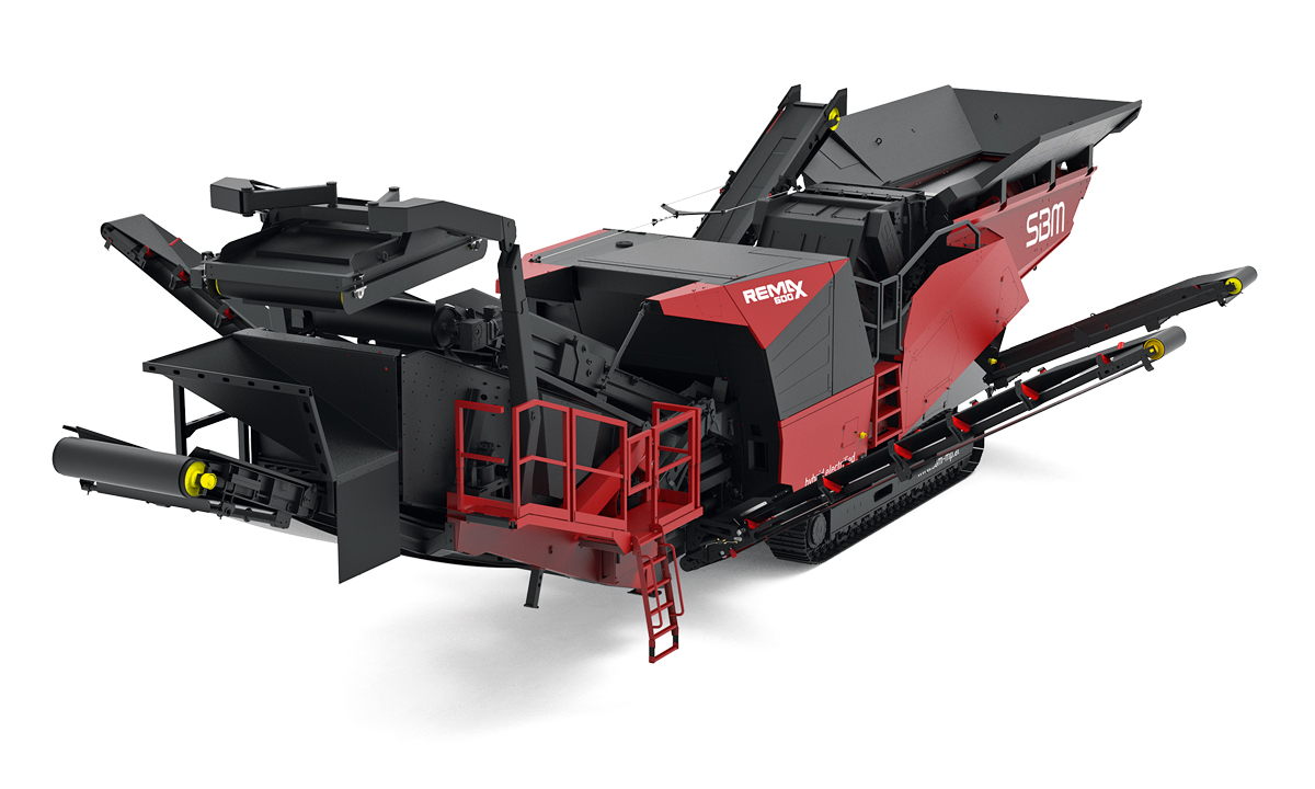 Auch ohne »KI inside« sollen die Leistungsdaten des neuen Flaggschiffs der SBM Remax-Baureihe als beeindruckend gelten: Mit den 600 t/h seines weiterentwickelten Prallbrechers 13/14/4 mit 1 380 mm × 1 000 mm messenden Einlauf (B × H), den transportfreundlichen Abmessungen (maximal 21,8 m × 3,48 m × 3,8 m, L × B × H) und Gesamtgewichten von 60 t bis 75 t will der Remax 600 ein neues Leistungssegment in der mobilen Primär- und Sekundärzerkleinerung eröffnen. Schon vor dem Marktstart im Oktober entschieden sich laut SBM die ersten Kunden für die »0-Serie« – voll verfügbar soll die mobile Highend-Lösung gegen Mitte 2023 sein.