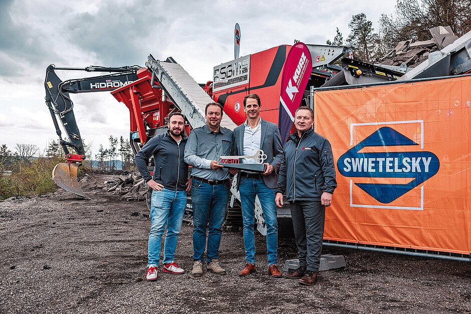 Swietelsky ist in allen Sparten des Bauwesens tätig. Am Standort Emmerting bereitet das Unternehmen Straßenaufbruchmaterial in verschiedenen Körnungsgrößen auf, was dann als qualitativ hochwertiger Recyclingstoff in den Neuasphalt zugegeben wird. Für die speziellen Anforderungen im Asphaltrecycling hatte das Kurz-Vertriebsteam die passende Lösung parat: Eine kompakte mobile Prallmühle mit extra großer Nachsiebeinheit, welche eine noch genauere Klassifizierung ermöglicht: die neue SBM Remax 300max. »Die Maschine hat uns auf der einen Seite durch die Vorteile der vergrößerten Siebfläche sehr stark überzeugt, aber die große ausschlaggebende Kaufentscheidung war letztendlich das dieselelektrische Antriebskonzept«, so Prokurist und Bereichsleiter Helwig Falch und ergänzt: »Am Standort Emmerting decken wir drei Asphaltmischanlagen und zwei Kiesgruben ab, daher ist eine einfache Transportierbarkeit der Maschine für uns von hoher Bedeutung, damit wir uns rasch von einem Standort zum nächsten bewegen können.«