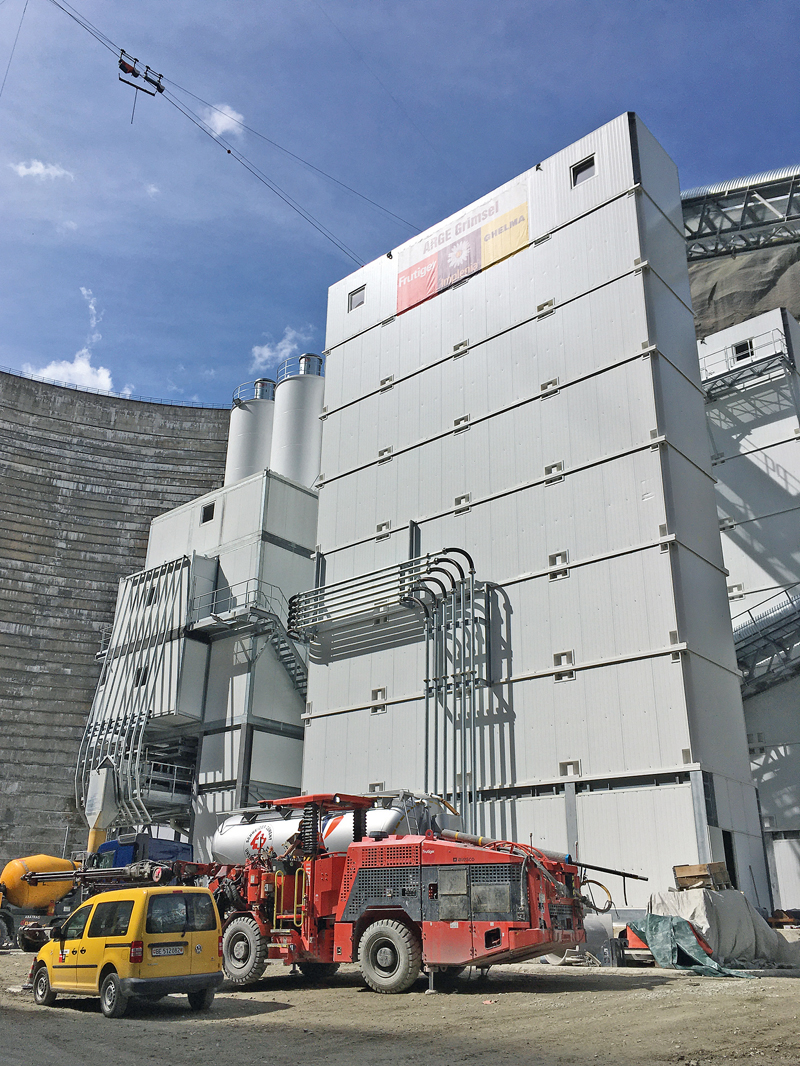 Die Linemix 3500 CM 800-6 H überzeugte die »ARGE Grimsel« durch höchste Betonqualität, einfache Wartung, optimales Raumangebot und Wirtschaftlichkeit. »Die Anlagen von SBM entsprechen den besonderen Anforderungen von Staumauerbeton gemäß EN 206: Vorsatzbeton, Kontaktbeton und Massenbeton für die Kernzone«, erklärt Baustellenchef Olivier Balmer. Für letztere Betonsorte kann mit Korngrößen bis 125 mm doppelt so großes Gesteinsmaterial verarbeitet werden wie üblich. So kann das in der Nähe deponierte Gesteinsmaterial – 700 000 t Grimselgranit vom Sprengausbruch eines Kraftwerkbaus in den 1970er-Jahren – für die Betonproduktion der Ersatz-Staumauer aufbereitet werden.