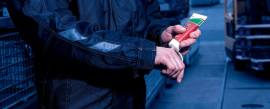 Im Winter potenziert sich dieses Risiko aufgrund der Witterungsverhältnisse noch. Unternehmen und Organisationen tun gut daran, ihren Mitarbeitern die regelmäßige Verwendung eines guten Hautpflegeprodukts nahezulegen.