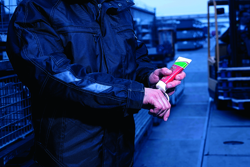 SC Johnson Professional™, einer der weltweit führenden Anbieter für Hautschutzprodukte, weiß um diese Schwierigkeiten. Die Cremes, die das Unternehmen entwickelt, sind in ihren Eigenschaften exakt auf die Bedürfnisse der jeweiligen Berufsgruppen zugeschnitten. Denn Voraussetzung für einen funktionierenden Hautschutz ist die tatsächliche Anwendung: Um sie sicherzustellen, muss sie dem anvisierten Nutzer so leicht wie möglich gemacht werden – und er muss natürlich vom Produkt überzeugt sein. Die Stokolan®-Serie gehört zu den Bestsellern des Sortiments. Outdoor-Worker können entsprechend der individuellen Belastung und ihres Hauttyps aus insgesamt sechs Hautpflegeprodukten wählen, die allesamt die Haut optimal bei der Regeneration unterstützen und somit beruflich bedingten Hauterkrankungen effektiv vorbeugen können. Alle Produkte der Stokolan®-Serie lassen sich optimal auf der Haut verteilen und ziehen schnell ein. Sie wirken beruhigend und fördern das Abklingen von bestehenden Hautreizungen. Gleichzeitig führen sie verloren gegangene Feuchtigkeit zu und verstärken so die Eigenregenerationskraft der Haut. Nach dem Waschen der Hände, in Arbeitspausen sowie am Ende des Arbeitstages, sollten alle gefährdeten Hautpartien sorgfältig mit der Hautpflege eingecremt werden. So kommen Outdoor-Worker mit heiler Haut durch den Winter. Sie würden ja auch nicht ohne Schutzhelm arbeiten, oder?