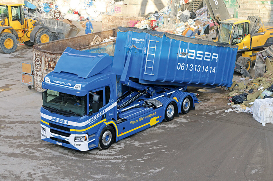 Im Januar wurde jetzt der erste Scania 25P B 6x2*4 NB mit Palfinger-Abrollkipper an Waser ausgeliefert. Der Chef persönlich ließ es sich nicht nehmen, sich für die ersten Foto- und Videoaufnahmen selbst hinter das Lenkrad zu setzen und eine erste Tour von Birsfelden in die KVA Basel zu unternehmen. »Ich freue mich und bin stolz darauf, als eines der ersten Unternehmen in der Schweiz einen BEV Scania zu besitzen und so einen aktiven Beitrag zu einem nachhaltigeren Transportsystem zu leisten. Das ist schon etwas ganz Besonderes«, so Marc Waser. Auch der Fahrkomfort unterscheide sich deutlich von einem Dieselfahrzeug. Waser nennt zudem die Laufruhe, das Rollverhalten und den notwendige Vorausblick für eine energiesparende Fahrweise sowie das Wissen, emissionsfreie Transporte in der Region durchzuführen.