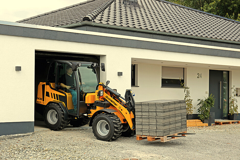 Als Nachfolger des Radladers 2445 SLT stellt sich der Schäffer 2430 SLT als vielseitiger und effizienter Kompakt-Radlader vor. Das Einsatzgewicht beträgt je nach Ausstattung zwischen 2,4 t und 2,6 t. Trotz des niedrigen Gewichts vermag die Maschine bis zu 1,7 t schwere Pflastersteinpaletten zu verfahren. Das Umsetzen des Laders von einer Baustelle zur nächsten kann zudem mit einem Pkw-Anhänger erfolgen. Die Kompaktheit der Neuheit wird ebenso durch ihre Breite ab 1,02 m und ihre geringe Bauhöhe ab 1,95 m deutlich. So können mit dem Lader auch niedrige Tor- und Türdurchfahrten passiert werden. Ebenso ist ein Einsatz in Tiefgaragen möglich. Die relativ niedrige Sitzposition erleichtert zudem den Auf- und Abstieg.