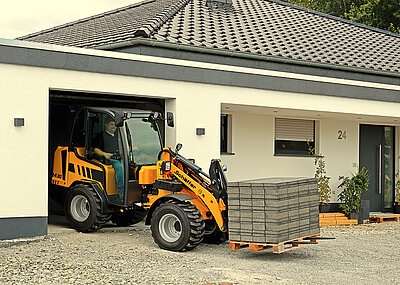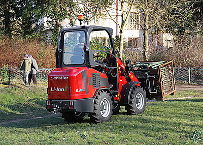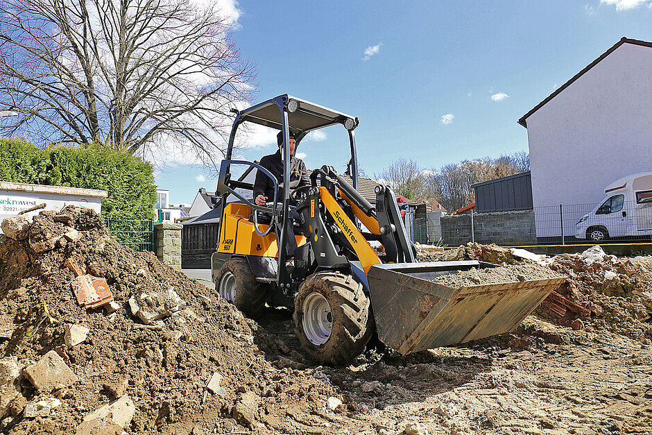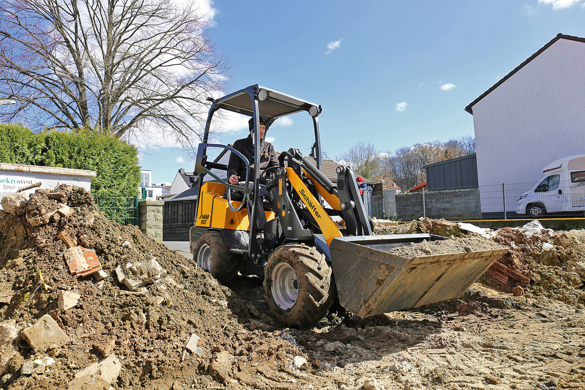 Die Philosophie, manuelle Tätigkeiten durch effizienten Maschineneinsatz zu ersetzen, ist seit den 1950er-Jahren im Unternehmen Schäffer verankert. Auch der neue, robust konstruierte 1422 SGT soll diese Leitlinien konsequent umsetzen. Der kompakteste Lader, den Schäffer je gebaut hat, lässt sich mit einem Einsatzgewicht von 1,25 t besonders bodenschonend einsetzen. Die niedrige Bauhöhe von lediglich 1,99 m und eine Breite ab 0,89 m unterstützen ein problemloses Passieren von schmalen und niedrigen Tür- und Tordurchfahrten. Zudem lässt sich der 1422 SGT mit Anbaugeräten per Pkw-Anhänger transportieren.
