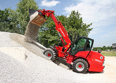 Mit einem Einsatzgewicht zwischen 8,4 t und 9,7 t, einer Hubhöhe von 5,4 m und einer Hubkraft von 4,2 t bietet der neue Teleradlader gute Voraussetzungen für anspruchsvolle Ladearbeiten in der Bauindustrie, auf Recyclinghöfen und überall dort, wo große Mengen Material umgeschlagen werden. Die Load-Sensing-Arbeitshydraulik mit 145 l/min Fördervolumen gehört ebenso zur Serienausstattung wie die 24"-Bereifung und der hydraulisch angetriebene Lüfter. Optional läuft dieser per Knopfdruck auch im Umkehrbetrieb. Die Reinigung des Kühlers erfolgt so im laufenden Betrieb – vorteilhaft nicht nur unter staubigen Einsatzbedingungen.
