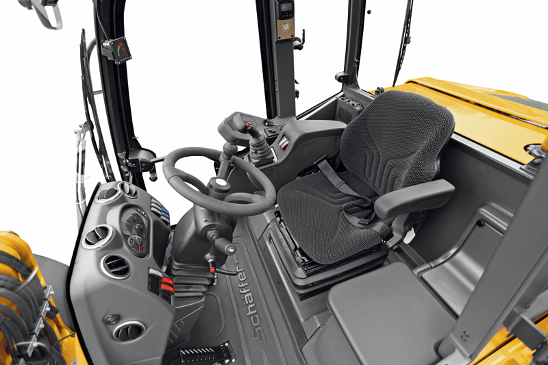 Eine großzügige Verglasung bietet dem Fahrer eine gute Rundumsicht. Das Zündschloss ist zusammen mit der Steuerung für die Heizungs- und optionale Klimaanlage in einer Konsole in unmittelbarer Nähe des Joysticks untergebracht. Ein neues Luftstromkonzept und ausstellbare Seitenscheiben sorgen für eine optimale Frischluftversorgung. §