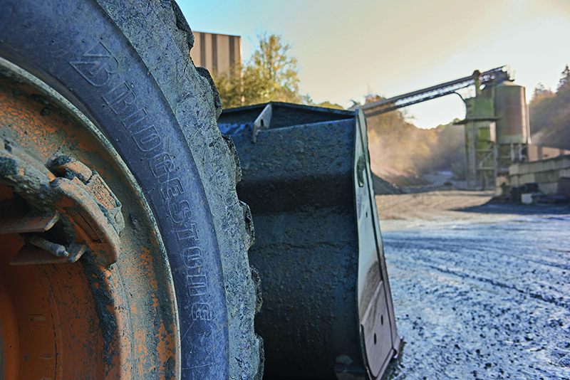 Die eingesetzten Reifen müssen im Jost-Steinbruch besonders schnittfest sein, denn die Fahrtwege im Steinbruch werden zwar regelmäßig gewartet, aber der ein oder andere kantige Stein oder ein Schlagloch sind keine Seltenheit. Hinzu kommt eine maximale Beladung im Tagesbetrieb: Ein Fahrzeug bewegt im Steinbruch Altenkirchen etwa 400 t/h, am Tag sind das ca. 3 500 t bis 4 000 t. »Ein passender und stabiler Reifen, der sowohl auf Schlamm als auch auf Stein fahren kann, ist somit unabdingbar«, so Knut Kadner, Bezirksleiter Erdbewegungsreifen bei Bridgestone Deutschland. »Wir empfehlen für den Einsatz im Steinbruch Altenkirchen ganz gezielt den V-Steel L-Traction als optimale Lösung.«