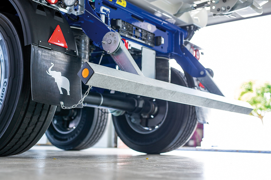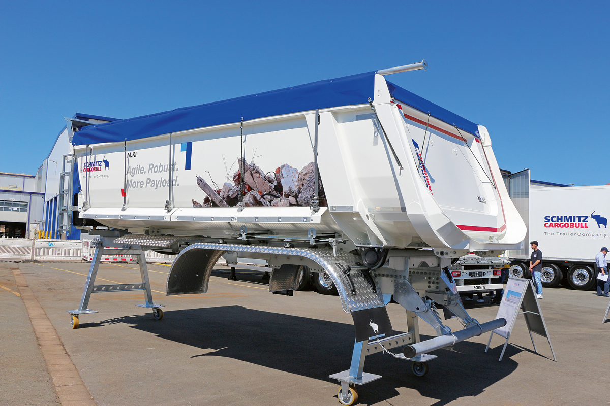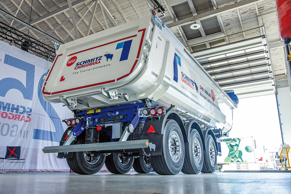 Schmitz Cargobull bietet für den 4-Achs-Motorwagen einen passgenauen M.KI-Aufbau mit einem Volumen von 16 m³ bis 23 m³ an. Basis ist die Stahlrundmulde aus hochverschleiß- und beulfestem Stahl, analog dem Sattelkipper. Dank flexiblem Baukastensystem wurde auch hier die Variantenvielfalt gesteigert. So ist jetzt neben 5,5 m und 5,8 m ein Fahrzeug mit 5,2 m Baulänge verfügbar. Die Gothaer Experten haben auch bei dieser Ausführung eine Gewichtseinsparung von 87 kg zur vergleichbaren Mulde SR14 erzielt. Mit Bodenstärken von 5 mm bis 10 mm, Seitenwandstärken von 4 mm bis 8 mm und Bordwandhöhen von 1 300 mm, 1 460 mm, 1 560 mm und 1 660 mm sowie unterschiedlichen Rückwandvarianten sieht der Hersteller seine Motorwagen mit Kippaufbau für nahezu jede Transportaufgabe geeignet. Bei den Rückwände sind innenliegende Rückwandklappen mit Schütte oder aufliegende Rückwandklappen mit umlaufender Dichtung möglich. Beide sind optional mit Schieber oder auch in hydraulischer Ausführung lieferbar. Die Muldenabdeckung kann als Rollverdeck vom Boden aus geöffnet und geschlossen werden oder über ein elektrisches Schiebeverdeck per Fernbedienung.