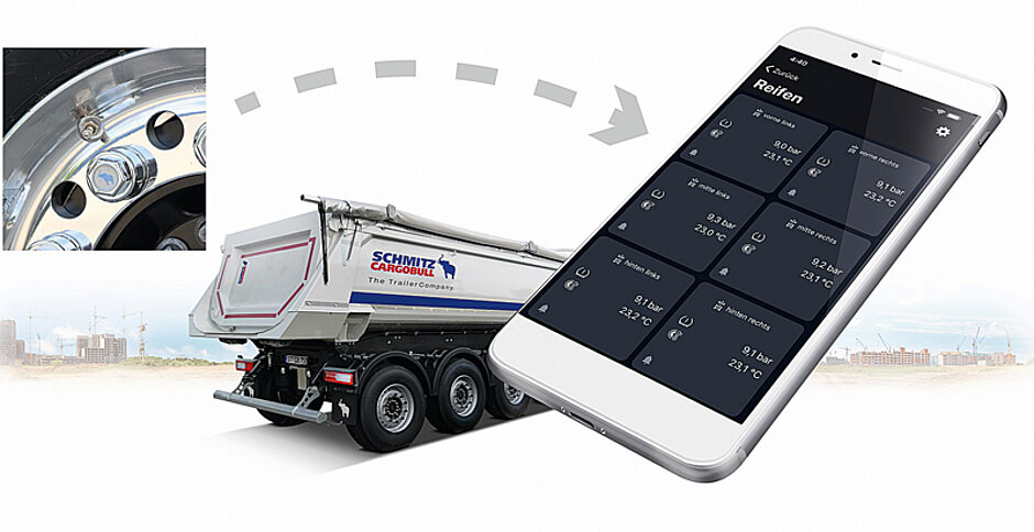Das Reifendruckkontrollsystem wird über die Trailer-Telematik TrailerConnect CTU3 gesteuert. Der Reifendruck und die Reifentemperatur können von jedem Reifen unter Angabe der Radposition im TrailerConnect-Portal und auch in der beSmart-App eingesehen werden. Im Portal können zudem Reifendruckreferenzwerte eingestellt werden. Bei einer Abweichung von diesen Werten werden hinterlegte Kontakte unmittelbar informiert. Auf Wunsch können diese Informationen durch eine standardisierte Schnittstelle in Drittsysteme übertragen werden. Auch eine Übertragung der Daten in die Sattelzugmaschine ist möglich. Durch die vollumfängliche Ausstattung in OEM-Qualität ab Werk ist keine Nachrüstung der Trailer-Telematik oder von RDKS-Sensoren nötig.