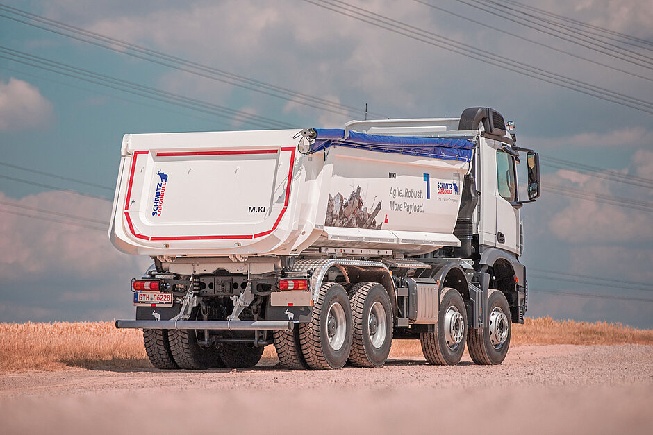 Schmitz Cargobull bietet auch den Motorwagen-Kippaufbau M.KI mit Thermoisolierung an. Die thermoisolierte Mulde mit 16 m3 Fassungsvermögen ist optimal für den Transport kleinerer Asphaltmengen ausgelegt. Das Fahrzeug weist durch die Thermoisolierung ein nur geringes Mehrgewicht von ca. 150 kg auf. Die kleineren Volumina, eine verbesserte Wendigkeit und Rangierfähigkeit machen sich vor allem in engen Verkehrsräumen, wie sie auf Baustellen oft üblich sind, bezahlt. Eine optimierte Geometrie der Mulde sorgt für einen tiefen Schwerpunkt und Kippstabilität. Die hochwertige, temperaturbeständige Muldenabdeckung ist als elektrisches Schiebeverdeck ausgeführt und kann sicher und komfortabel per Fernbedienung bedient werden. Auch die neue Rollplane ist bequem vom Boden aus bedienbar. Die Modellpalette umfasst Mulden mit verschiedenen Typenlängen und Volumen in unterschiedlichen Rückwandausführungen.