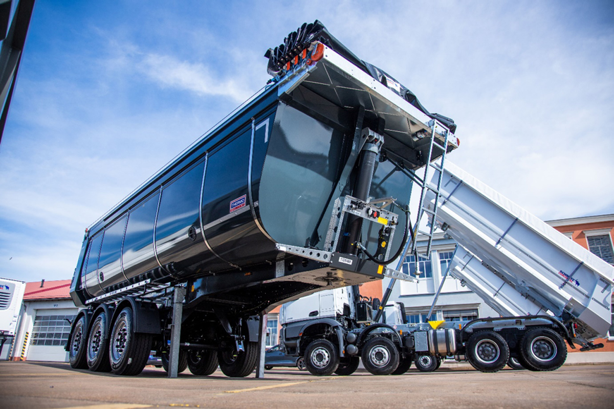 Aufgrund der Anpassung im Bodenbereich der Mulde ist es möglich, den gewohnt niedrigen Schwerpunkt und damit die hohe Kippstabilität auch für die isolierte Ausführung beizubehalten. Die Isolierung erlaubt zudem eine größere Variantenvielfalt, sodass auch isolierte Mulden für andere europäische Märkte darstellbar sind. Das Modellprogramm Stahl-Rundmulde mit Thermoisolierung umfasst die Varianten der Systemlänge SR 7.2 für das Volumen von 24 m3 und 28 m3 (Bauhöhe 1 460 und 1 660 mm), die Systemlänge SR 8.2 für das Volumen von 27 m3 (Bauhöhe 1 460 mm) sowie auch für den 2-Achs-Sattelkipper S.KI 18 7.2 mit der Bauhöhe von 1 460 mm. Je nach Bedarf stehen verschiedene Boden- und Seitenwand-Kombinationen zur Auswahl. Außerdem kann der Kunde zwischen verschiedenen Rückwandklappenvarianten und Verdeck-Systemen wählen.