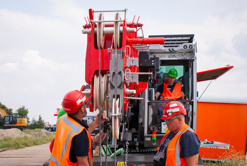 Zusätzlicher Support beim zukunftsweisenden Vorhaben: Schreiber Baumaschinen lieferte den neuen und an das Corprorate Design angepassten Raupen-Teleskopkran Sennebogen 653e an die De Romein Group aus. Herr Oliver Stumpf, Gebietsleiter Baumaschinen bei Schreiber Baumaschinen, übergab den Teleskopkran an Herrn Johann Hollwedel, den Fachbereichsleiter für Kabelprojekte bei De Romein GmbH, einer deutschen Tochterfirma der De Romein Group.