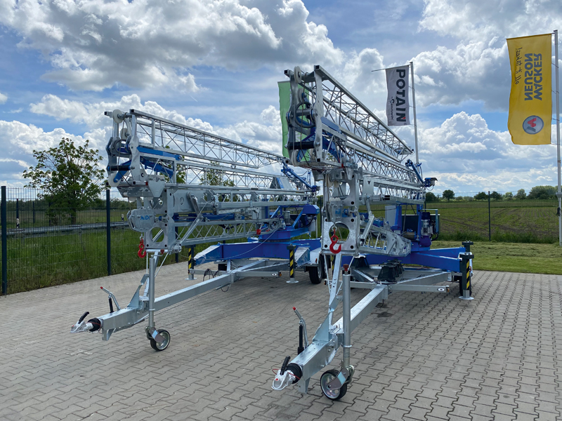 Ein schneller Aufbau wird durch Hydraulik in Turm und Ausleger per Funkfernsteuerung forciert, eine Person soll allein dafür nur etwa 15 Minuten benötigen.