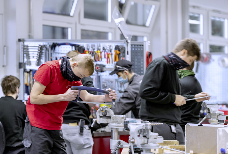 Im Zentrum steht die Ausbildung der Lehrlinge, und zwar aus der gesamten Gruppe. Die derzeit 65 angehenden Fachkräfte am Standort Hanzing werden in den ersten beiden Jahren zu 100 Prozent hier unterrichtet, praktisch wie theoretisch. Hartwig will damit die Ausbildung vereinheitlichen und gleichzeitig heben. „Wir benötigen mehr berufsübergreifende Orientierung, die in der Produktion mitunter zu kurz kommt. Hier werden alle in die Grundlagen mehrerer Berufe eingeführt“, erläutert Hartwig. Im dritten Ausbildungsjahr wechseln die Lehrlinge dann in die Fachbereiche der Produktion. Bis dahin haben sie durch die gemeinsame Zeit auch ihr internes soziales Netzwerke gebildet.