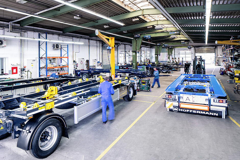 Dafür werden die Kapazitäten bei Hüffermann ausgebaut, unter anderem durch eine Verzahnung der Produktion. Schwarzmüller verlagerte seine Behältertransportfahrzeuge zum Tochterunternehmen nach Deutschland. Umgekehrt werden die Längsträger, die Hüffermann im Fahrzeugrahmen verbaut, komplett in Österreich gefertigt.