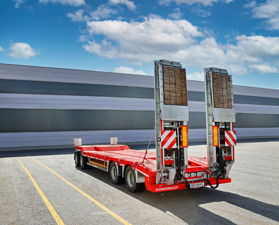 Mit Schwarzmüller-Tiefladern können schwere Baumaschinen, Holzleimbinder und Stahlträger, aber auch Container und Sondermaschinen transportiert werden – alles bis zu 60 t Gesamtgewicht. Die Wandelbarkeit der Fahrzeuge hat nach Berechnungen des Herstellers zur Folge, dass sich die Einsatzzeiten um bis zu 40 % erhöhen. Deshalb würden Schwarzmüller-Kunden intensiv beraten, wie sie ihren Tieflader optimal für die spezifische Einsatzumgebung konfigurieren sollten.