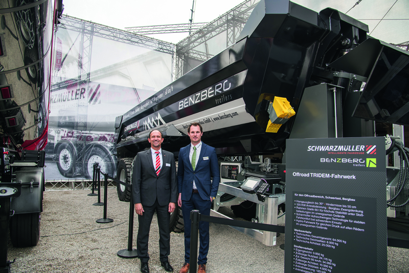 Bei der Kooperation mit dem Fahrzeugbauer Benzberg mit Sitz in Schörfling am Attersee (Oberösterreich) stehen technische und technologische Neuerungen im Leichtbau, der Digitalisierung und der Antriebstechnik im Fokus. »Die High-End-Baufahrzeuge von Benzberg zeichnen sich durch Robustheit sowie eine besondere Leistungsfähigkeit aus und steigern die Wirtschaftlichkeit«, sagte Roland Hartwig. »Damit deckt sich die Vision von Benzberg exakt mit der von Schwarzmüller, nämlich individuelle Fahrzeuge mit Mehrwertgarantie zu produzieren.« Im ersten Schritt werde Schwarzmüller die Tridem, eine geländegängige Kippmulde mit Hangausgleich und Radantrieben, in sein Programm aufnehmen und damit die Fahrzeugpalette für die Bauwirtschaft nochmals erweitern.
