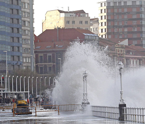 Auch über die Atlantikküste im Norden Spaniens fegten mehrere Stürme hinweg. Bei Windstärken von bis zu 140 km/h und starken Regenfällen traten mehrere Flüsse über die Ufer und überschwemmten viele Ortschaften entlang der Nordküste. Schutzmauern und Promenaden wurden von mehr als 10 m hohen Wellen beschädigt. So waren auch in der Hafenstadt Gijòn Maschinen von New Holland im Einsatz, beispielsweise für Sofortmaßnahmen an der Promenade ein, um sie für den nächsten Sturm zu sichern. José Luis Vigil Sánchez, Geschäftsführer des Bauunternehmens RUVICAM: »Nachdem wir einige Tage lang an der Behebung der Schäden gearbeitet hatten, haben wir einen unserer Minibagger – den New Holland E35.2 – an der Promenade positioniert. Der Sturm wurde immer schlimmer und riesige Wellen haben den Wellenbrecherwall durchschlagen. Diese Wellenbrecher schützen normalerweise die Promenade, aber diese wurde mitsamt der Maschine überspült. Wir haben den Bagger abgeholt, mit Süßwasser abgespült und neu geschmiert. Trotz des unfreiwilligen Bades funktioniert die Maschine genauso gut wie immer.« Insgesamt hat RUVICAM drei Maschinen von New Holland hier im Einsatz: der Minibagger E35.2 trägt mit einem kleinen Hammer das Pflaster der Promenade ab. Hier wird ein Träger eingesetzt, um die Wellenbrecher wieder in Stand zu setzen. Der Midi-Bagger E80 wurde mit einem Spezialwerkzeug ausgestattet, mit dem die Wellenbrecher entfernt und neu positioniert werden können, jedes dieser Elemente wiegt 700 kg. Zudem arbeitet ein Minibagger E50.2 an den Überresten der zerstörten Mauer.