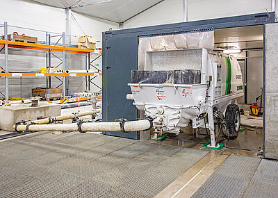 Die durchschnittliche Schlauchlänge liegt bei etwa 75-100 Metern, die es bei der Dimensionierung der Pumpe zu berücksichtigen gilt. Darüber hinaus muss die Betonpumpe gewährleisten, den Beton auf eine Höhe von etwa 35 Metern zu fördern.