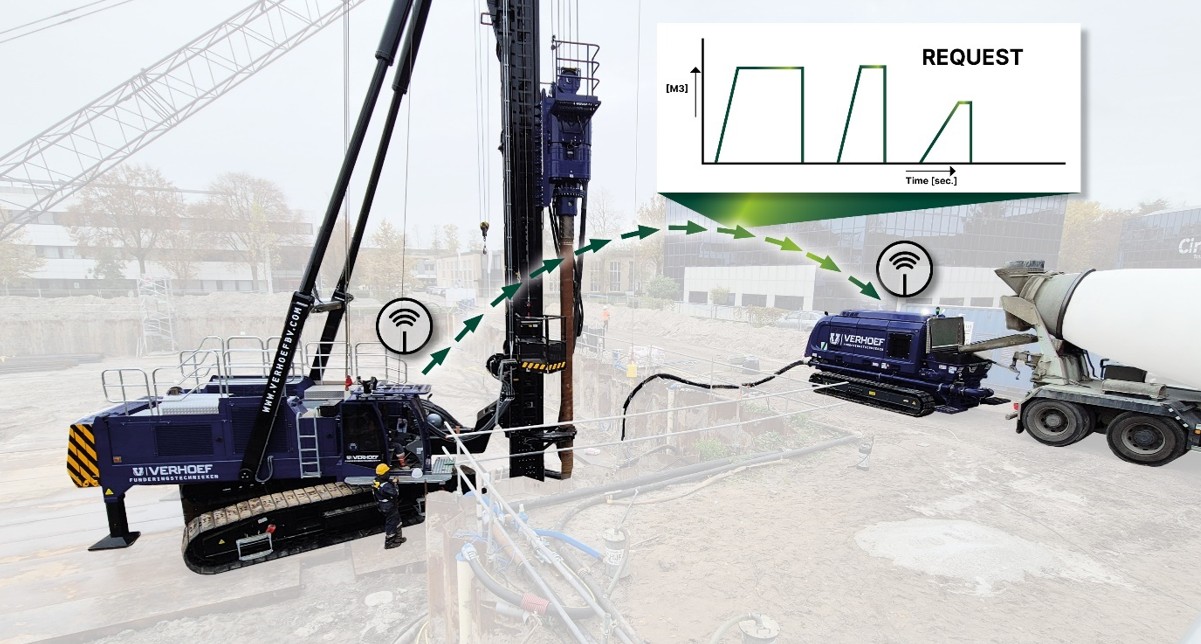 Bedarfsgenaue Anforderung von Beton durch die Pfahlbohrmaschine