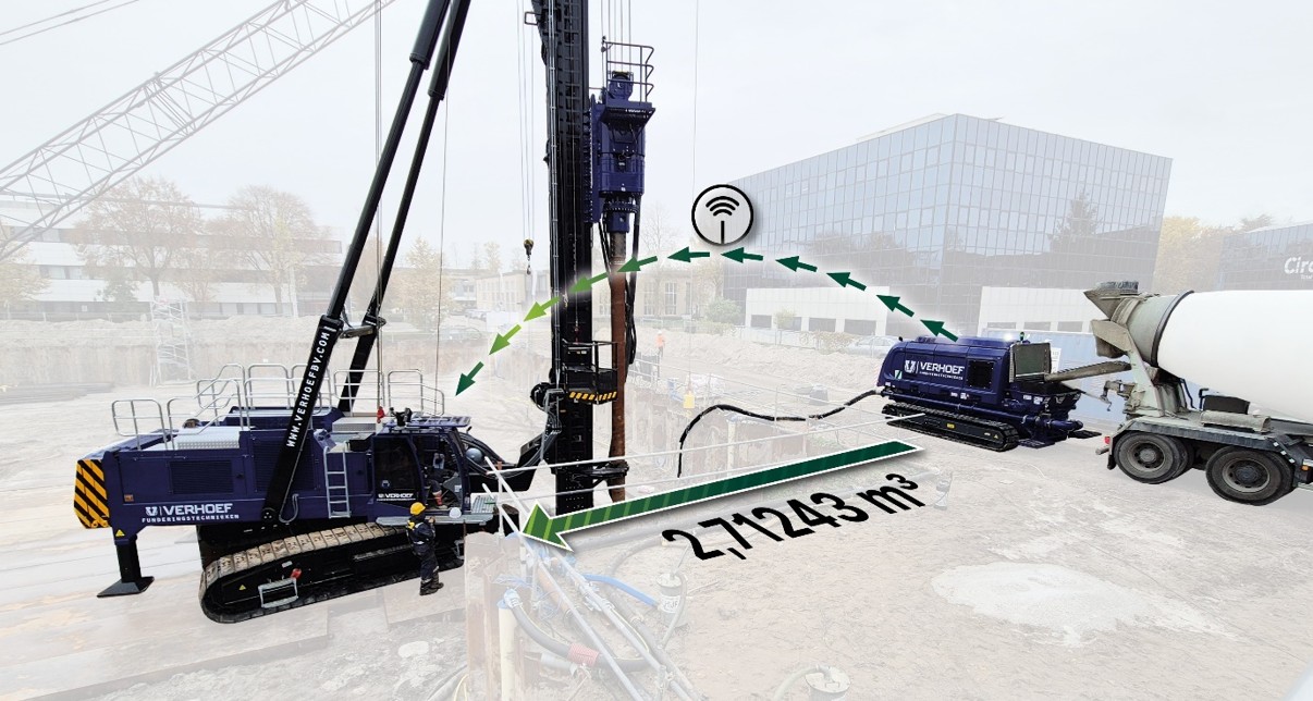 Drahtlose Kommunikation und Dokumentation Die Betonpumpe übermittelt die gepumpte Betonmenge an die Pfahlgründungsmaschine