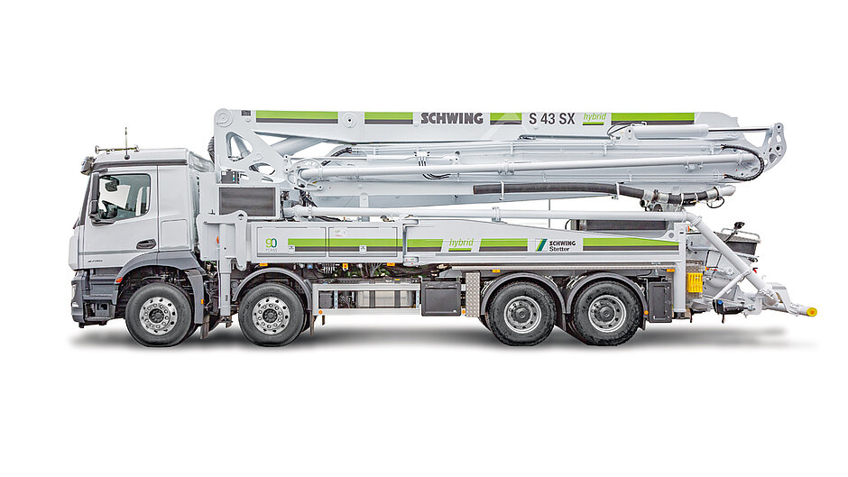 Eine weitere Neuheit wird die Autobetonpumpe »S 43 SX hybrid« darstellen: Sie kombiniert Elektromobilität mit bewährter Pumpentechnologie. Durch den Anschluss an Baustellenstrom können Betonierarbeiten lokal emissionsfrei und kosteneffizient durchgeführt werden. Das intelligente Antriebssystem ermöglicht es, zwischen elektrischem und konventionellem Dieselbetrieb zu wechseln, wodurch eine maximale Anpassungsfähigkeit an unterschiedliche Baustellenbedingungen gewährleistet wird.