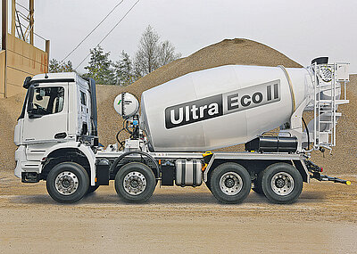 Mit dem UltraEco II präsentiert das Unternehmen einen besonders leichten Fahrmischer in der 9 m³-Klasse. Der Aufbau ist durch konsequenten Leichtbau 300 kg leichter geworden. Somit liegt der Aufbau unter 3 Tonnen – und das bei verbesserter Stabilität.