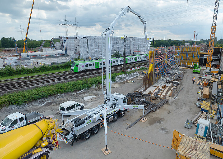 Die Verringerung des CO2-Footprints im Pumpbetrieb ist zwar herausfordernd, aber aufgrund existierender Vorschriften, die auf innerstädtischen Baustellen nur noch das elektrische Pumpen erlauben, ebenso unabdingbar. „Auf der NordBau 2024 zeigen wir eine Hybrid-Lösung für den elektrischen Betrieb der Betoneinbringung am Beispiel der beliebten Autobetonpumpe S 43 SX. Beim Schwing-Hybrid-Konzept steht die Effizienz klar im Vordergrund“, so Jens Heinrich, Leiter Marketing International der Schwing Gruppe.
