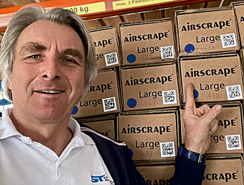 »Unser Zugpferd ist klar der AirScrape«, sagt Thorsten Koth als Vertriebschef bei ScrapeTec Trading. »Aber Kunden erkennen schnell die Synergie-Effekte, wenn die drei Staubreduktions-Spezialisten zusammenwirken. In dieser Branche braucht es etwas länger, bis Innovationen erkannt und genutzt werden.« Thorsten Koth betreut weltweit Kunden, die von AirScrape über Fachzeitschriften, Plattformen oder Mitbewerber erfahren haben. »Viele Interessierte haben zuerst den AirScrape auf Youtube im Einsatz gesehen und die Vorteile erkannt. Dann wollen sie mehr Informationen oder auch eine Vor-Ort-Beratung.« Über Online-Konferenzformate kann ScrapeTec das System ebenso vorstellen. Dazu kommen laut Koth Vertriebspartner in einigen Ländern für die Beratung »oder wir reisen manchmal selbst an.«