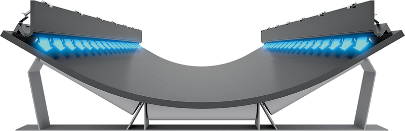 AirScrape sind spezielle Seitenabdichtungen an der Übergabevorrichtung, die kontaktfrei über dem Fördergurt schwebend den Luftstrom nutzen, der durch die Gurtbewegung entsteht. Sie werden seitlich mit einem Luftspalt von ca. 1 mm bis 2 mm zum Gurt an der Übergabe montiert. Im AirScrape eingelassene Lamellen sorgen für den Venturi-Effekt, der einen Luftsog von außen nach innen erzeugt. Staub oder feines Material kann dadurch nicht nach außen gelangen.
