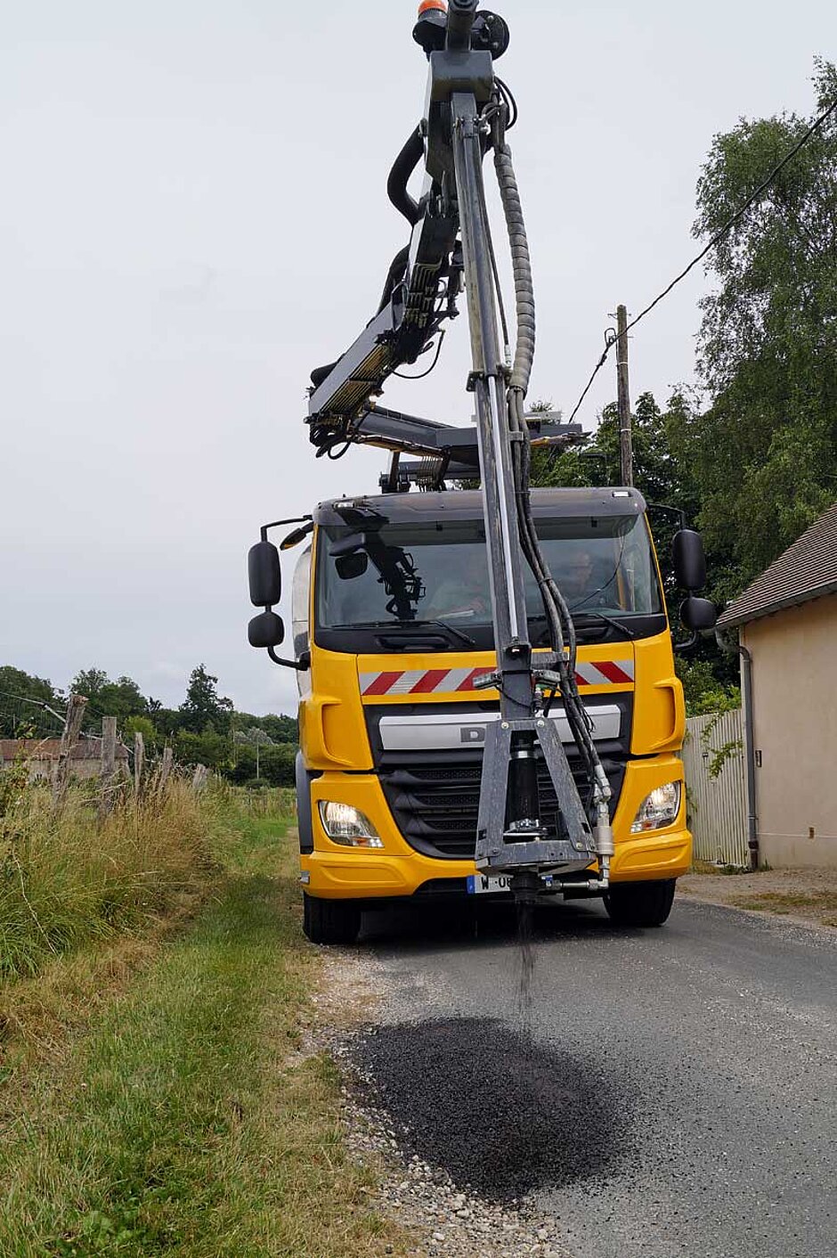 Der Greenswift-Chipsealer ist mit zwei Systemen ausgestattet: Die Hochdruckspritzanlage steht für eine Auftraggeschwindigkeit von 70 km/h und wird insbesondere für Reparaturen tiefer Schlaglöcher oder Gussgrate eingesetzt, der Schwerkraftspritzvorgang bietet sich hingegen bei oberflächenspezifischen Anwendungen (lokalisierte Bearbeitung bzw. Teilanwendung) an.