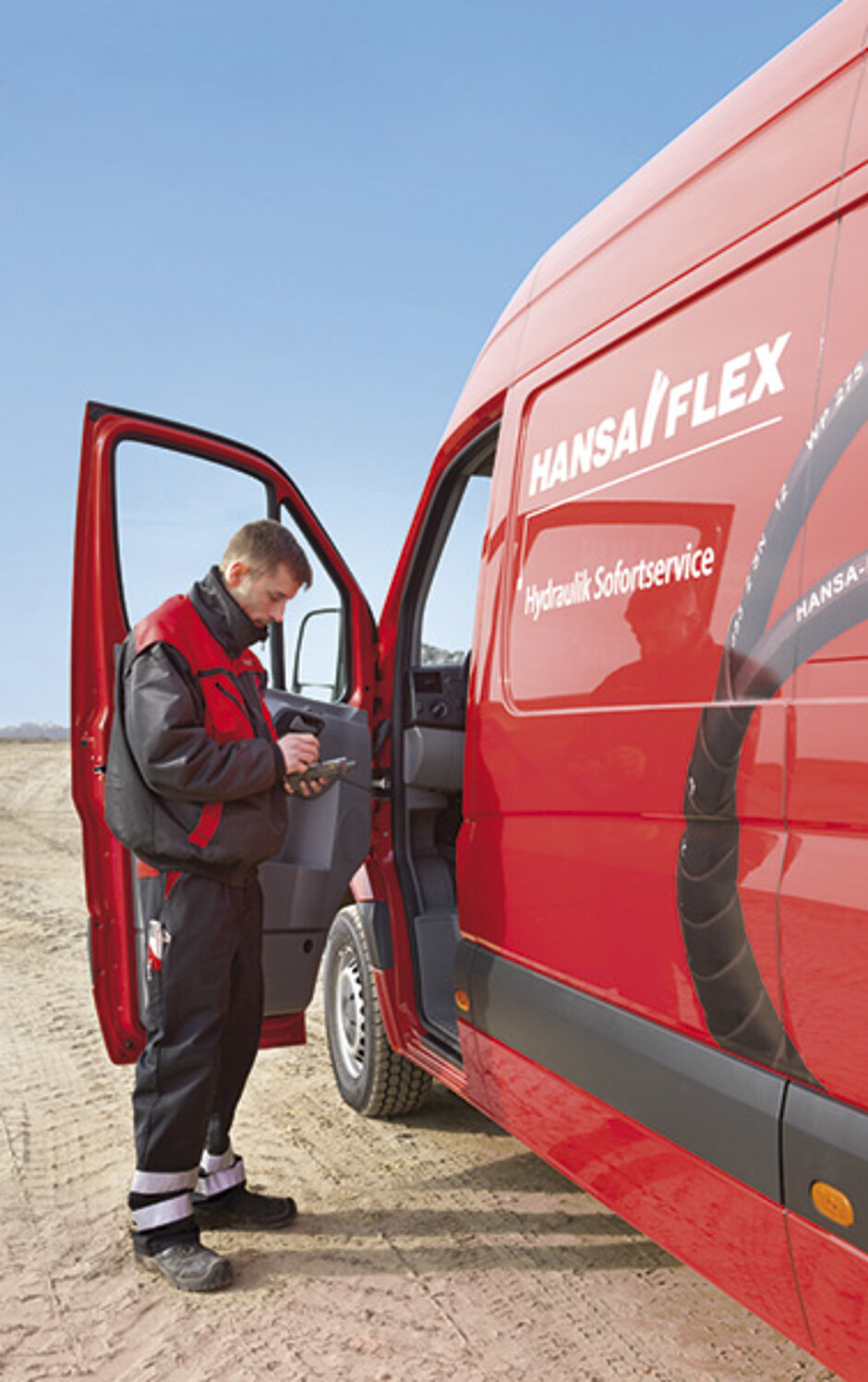 Über 260 Fahrzeuge des mobilen Hydraulik-Sofortservices sind weltweit im Einsatz – mehr als 150 davon auf deutschen Straßen. So sind die mobilen Services immer dort vor Ort, wo sie gebraucht werden. Ein Anruf genügt und die HANSA-FLEX-Spezialisten rücken aus. Rund um die Uhr – jeden Tag. Ob in Ballungszentren, in ländlichen Gegenden oder auch fernab jeder Zivilisation – der mobile Hydraulik-Sofortservice kommt. Mit extrem kurzen Reaktionszeiten reduziert der Systempartner für Hydraulik Stillstände und Ausfallzeiten von Maschinen auf ein Minimum. Egal wann und egal wo.