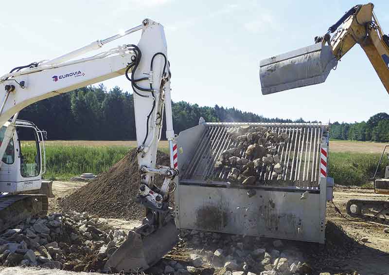 Mit der zweiten SBR-Modellgeneration konnte eine deutliche Leistungssteigerung erreicht werden. Insbesondere dank optimierter Siebbalken und einer veränderten Siebspannung wurden der Massedurchsatz, das Siebbild und die Rüstzeit beim Siebdeckwechsel verbessert. Viele Kunden habe, wie der Anbieter betont, insbesondere die stete Einsatzbereitschaft überzeugt.Rüstzeiten, abgesehen vom Siebdeckwechsel, und Instandhaltungsintervalle entfallen. Entsprechend gibt es keinen Ölwechsel, keine Schmiernippel oder Umlenkrollen und Bänder die gewartet werden müssten. Nach dem Einschalten der Anlage kann der Siebvorgang unmittelbar beginnen. Dieser Vorteil konnte auch bereits in Straßenbauunternehmen überzeugen. Der offene Siebmaschinenrahmen bietet eine einfache Neigungsverstellung per anpassbarer Beinstützen, das Sieb ist semimobil beispielsweise per Radlader oder Bagger umsetzbar.Mit einem Massedurchsatz von 120 t/h und mehr lassen sich große Mengen Aushub schnell auf der Baustelle klassieren. So kann Boden vor Ort wieder verfüllt werden ohne abtransportiert werden zu müssen. In manchen Fällen kann das Klassieren vor Ort sogar jeglichen Transport vermeiden, wenn beispielsweise im Straßenbau grobes Gestein als Frostschutz aufbereitet wird und der Feinanteil für Rekultivierungszwecke eingesetzt werden kann.