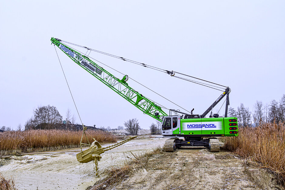 Das Unternehmen Karl Mossandl GmbH & Co ist u.a. im Bereich Sand-Kies-Produktion tätig und gehört zu den wenigen Betrieben, die täglich Seilbagger bei der Produktion von Baustoffen einsetzen und verfügt über eine jahrelange Expertise. Hierbei verlässt man sich seit Jahren auf Produkte von SENNEBOGEN. Der zuvor eingesetzte 650 HD wurde durch den 655 E ersetzt. Nur wenige Kilometer vom SENNEBOGEN Firmensitz in Straubing entfernt hat die Firma Mossandl in Dingolfing ihren 655 E mit Schleppschaufel im Einsatz.