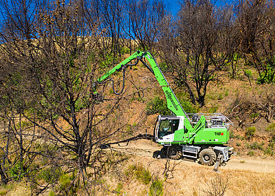 Für zusätzliche Sicherheit bei dieser heiklen Arbeit sorgt nicht nur, dass man die große und komfortable Maxcab-Kabine serienmäßig mit einem Winkel von 20° nach hinten neigen kann und der Fahrer somit immer optimale Sicht auf seine Last hat, sondern auch die Arbeitsbereichsbegrenzung mittels der sogenannten „Virtual Wall“. Diese gibt ein Signal an den Fahrer, wenn der Teleskopausleger den vordefinierten Bereich verlassen würde und zu nahe an die Stromleitung käme. Außerdem informiert der Bildschirm in der Kabine den Fahrer zuverlässig über die genaue Position des Auslegers.