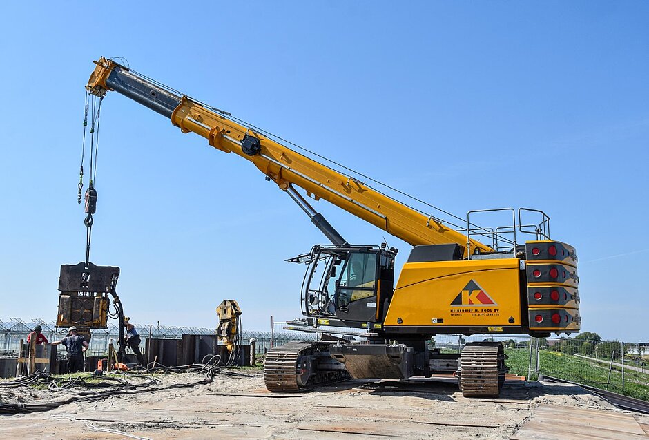 Seit mehr als 45 Jahren ist die Heibedrijf M. Kool BV aus Wilnis in den Niederlanden Spezialist für Fundierungsarbeiten. Von ihrem Kunden VOBI wurden sie nun beauftragt, Spundwände für den Bau einer neuen Pumpstation in der Region Westland zu montieren. Für die Fachleute eigentlich kein Problem – wäre da keine tiefhängende Hochspannungsleitung mit im Spiel. Auf dieser hochkomplexen Baustelle glänzt der 70t Raupentelekran von SENNEBOGEN vor allem durch seine Vielseitigkeit und Präzision.