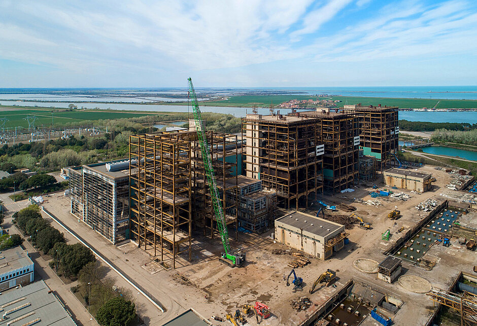 Das Gelände des ehemaligen thermoelektrischen Kraftwerks im venezianischen Porto Tolle soll wiederbelebt und zu einem ökologisch-nachhaltigen Ferienresort umgestaltet werden. Zuvor gilt es jedoch, das stillgelegte Kraftwerk zu demontieren. Als eines der führenden Abbruchunternehmen in Europa hat sich die Ferraro Group dieser Herausforderung angenommen. Es findet ein selektiver Abriss statt, der nur die Einrichtungen umfasst, die aus Sicht der Kreislaufwirtschaft für die neuen Aktivitäten nicht funktional sind. Baustellenkoordinator Calogero Arnone erklärt: „Die kontrollierten Abbrucharbeiten werden mit dem Sennebogen 6300 HD durchgeführt, einem einzigartigen Gerät, das es ermöglicht, in bis zu 75 m Höhe präzise vorgegebene Punkte mit einer Kugel zu treffen.“