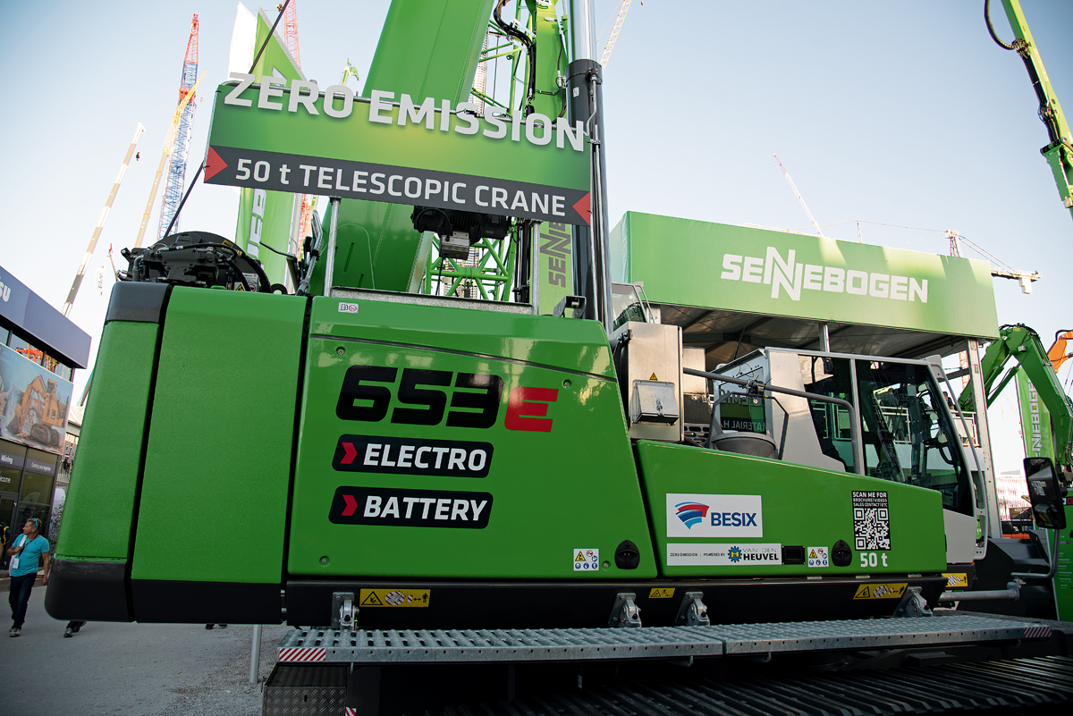 Emissionsfreiheit und maximale Flexibilität: Das soll der neue 50-t-Akku-Kran von Sennebogen bieten (das bauMAGAZIN berichtete bereits in Heft 10/22, Seite 240). Entwickelt wurde die Maschine zusammen mit dem niederländischen Händler Van den Heuvel im Hinblick darauf, dass vor allem im innerstädtischen Bereich stetig höhere Umweltanforderungen gestellt werden. So kombiniert der 653 E Electro Battery die Vorteile eines Raupenteleskopkrans mit moderner Akkutechnologie.