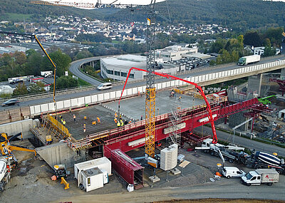 Hebearbeiten über der Straße: Sicheres Heben durch Standsicherheit des Krans