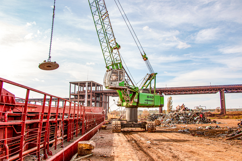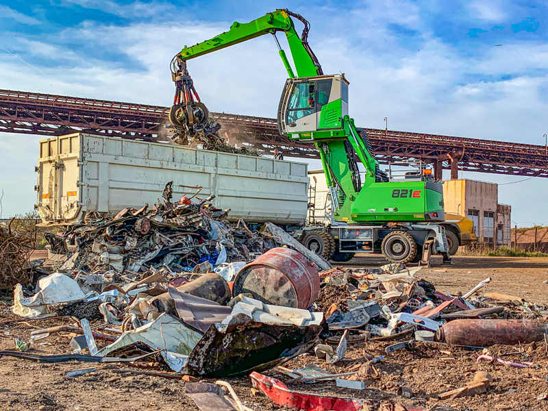Die rumänischen Schrottspezialisten von European Metal Services SA im Hafen von Konstanza begrüßten im April 2019 ein neues Teammitglied in ihrer grünen Flotte: Mit dem mobilen 821 der E-Serie von SENNEBOGEN ergeben sich völlig neue Möglichkeiten in der Schrottlogistik, da das Maschinenupgrade bei der Entladung von LKWs, bei der Sortierung vor Ort und beim Umschichten der täglich anfallenden Schrottmassen schnellere Arbeitszyklen und noch mehr Power verspricht. Als „alter Hase“ bereits seit 2013 vor Ort: die SENNEBOGEN Seilbagger-Sonderlösung 640 mit 1,5 m Pylon zur Schrottverdichtung auf den bereits beladenen Schiffen.