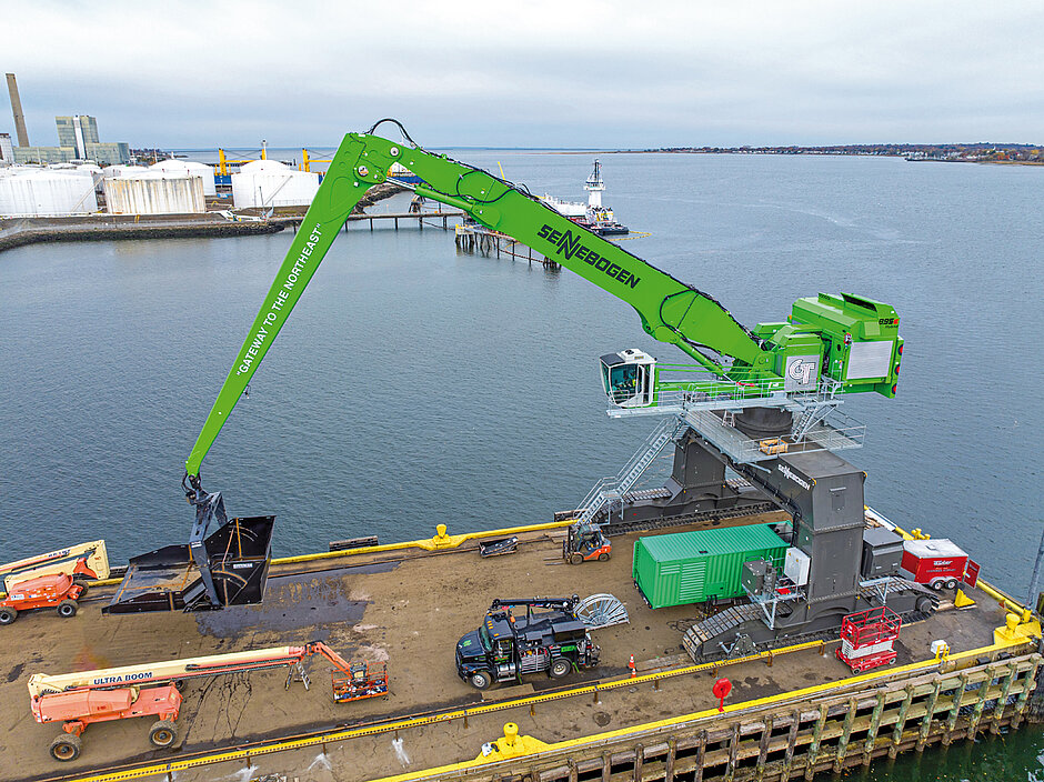 Gateway Terminal gehört zur Enstructure-Gruppe, die für den Betrieb von 21 Terminals verantwortlich ist, darunter drei in Connecticut. Das Terminal hat sich sowohl im Trocken- als auch im Flüssigsegment einen Namen gemacht und zählt heute zu den effizientesten und wirtschaftlichsten Terminalbetreibern im Nordosten der USA. Um den steigenden Anforderungen gerecht zu werden und die Betriebseffizienz weiter zu steigern, entschied sich Gateway Terminal für die Anschaffung des Sennebogen »895 E«, der mit seinen 420 t Einsatzgewicht als größter Umschlagbagger der Welt gilt und eine Reichweite von 40 m aufweist.