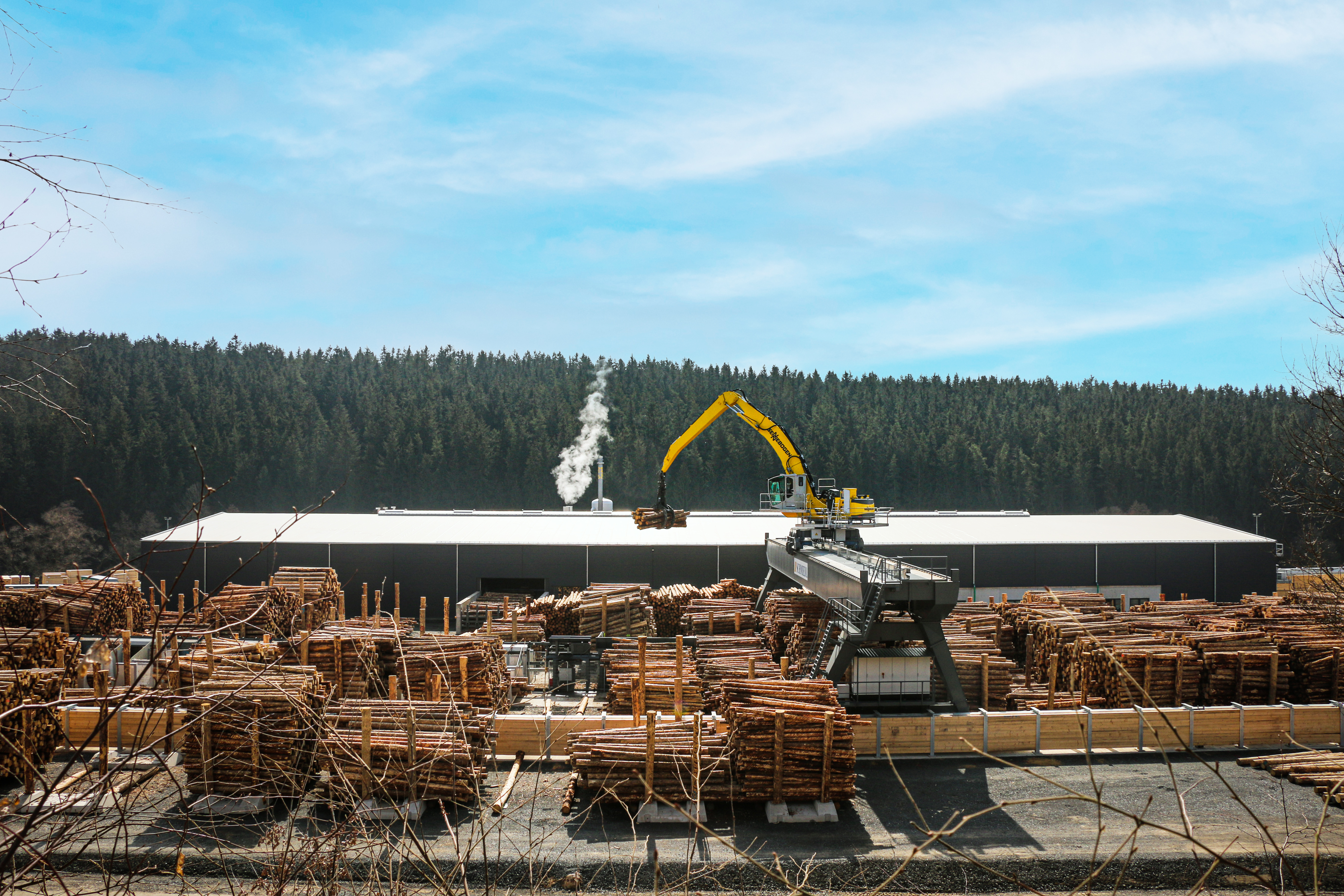 In vielerlei Hinsicht hat sich das Unternehmen dem großen Ziel des nachhaltigen Wirtschaftens verschrieben: die Verarbeitung des nachwachsenden Rohstoffes Holz, eine regionale Wertschöpfung durch das angrenzende, waldreiche Fichtelgebirge und emissionsarme Anlagen und Maschinen, die die große Nachfrage am Markt gut bedienen lassen. Die Entscheidung für einen Elektrobagger war daher für den Geschäftsführer Wolf-Christian Küspert ein weiterer Schritt hin zum Aufbau eines nachhaltigen Betriebes.
