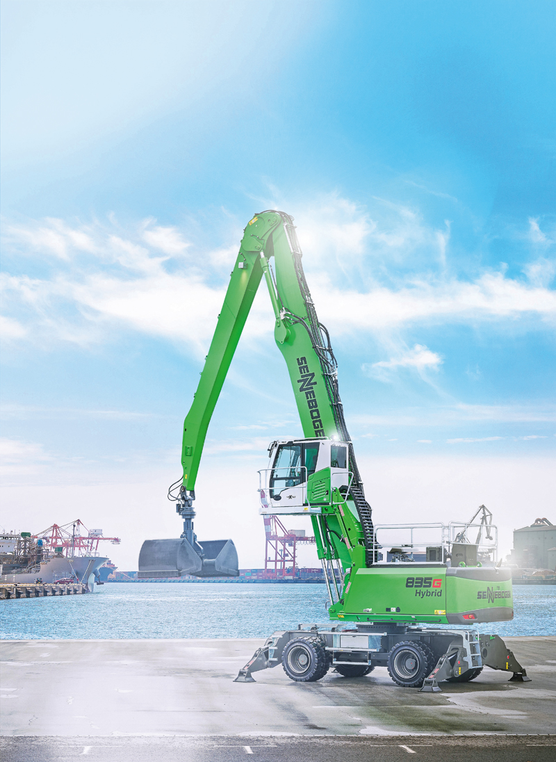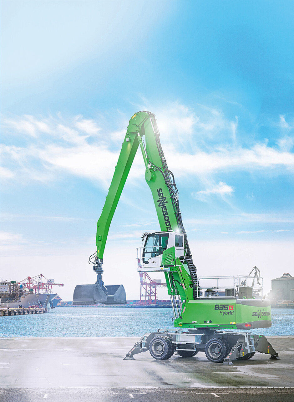 Mit der Neuauflage des 835 in der neuen Serie hat sich Sennebogen gleich an einen Allrounder im Materialumschlag gewagt: mit Ausrüstungslängen bis 20 m zielt die Maschine auf Einsätze im Schrott- und Holzumschlag genauso ab wie auf den Hafenbetrieb. Zahlreiche Unterwagenvarianten von Mobilunterwagen bis Raupenlaufwerk und stationäre Lösungen sind im Sennebogen-Baukastenprinzip konzipierbar.