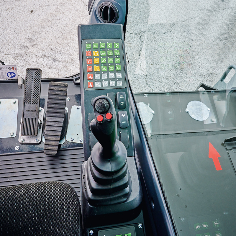 Mit der neuen Serie kommt die neue Maxcab-Kabine zum Einsatz. Der Fahrerarbeitsplatz wurde optimiert, über die neue, folierte Tastatur und das Sencon-Display lassen sich alle Einstellungen vornehmen. Ebenfalls optimiert wurden Klimaelemente und Luftströmung sowie Ablagen. Geblieben sind die Schiebetür für unkomplizierten Einstieg und die ergonomischen Joysticks. Die neuen durchgehenden Front- und Seitenscheiben bieten einen ungehinderten Blick nach draußen. Die Konstruktion und Kinematik der Kabinenerhöhung wurde nochmals verbessert und soll den Fahrer noch komfortabler nach oben bringen. Die Kabine ist standardmäßig stufenlos über einen Höhenunterschied von 2,8 m verfahrbar, optional bis zu 3,5 m. t