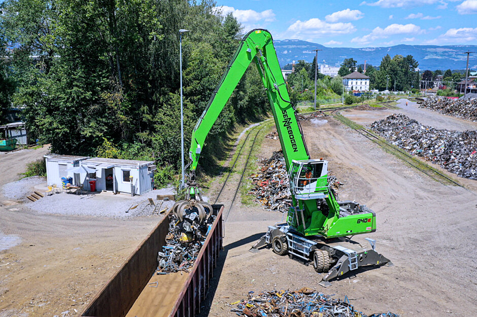 Schweizer Stahlwerk nutzt SENNEBOGEN 840 E-Serie für den Schrottumschlag und die Altschrottverwertung