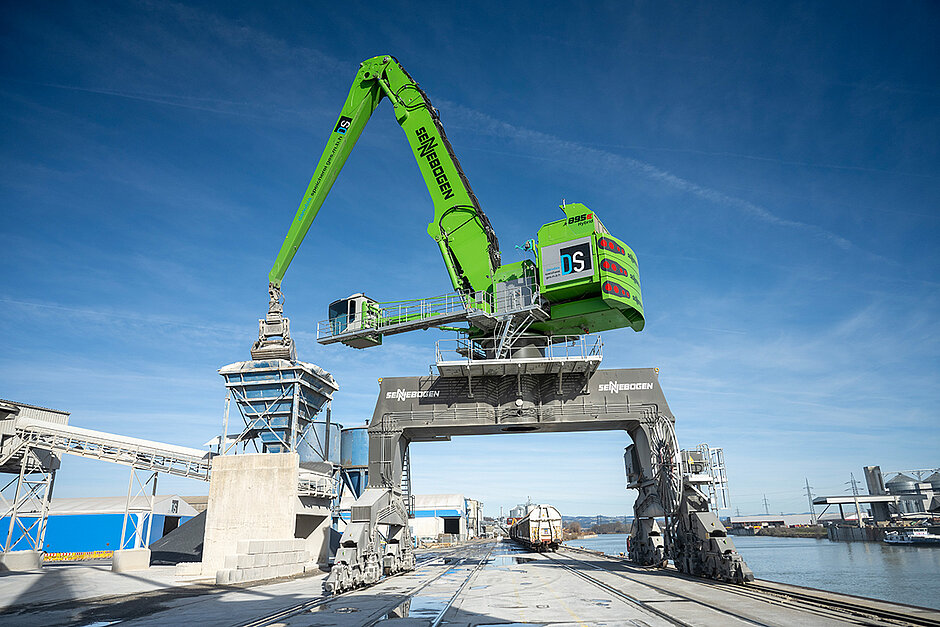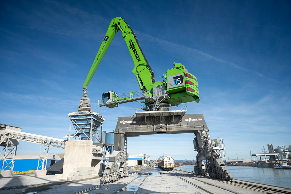 Seit Jahrzehnten hat sich Sennebogen mit kundenspezifischen Umschlagmaschinen besonders im anspruchsvollen Hafensegment einen Namen gemacht. Gerade wenn es darum geht, in möglichst kurzer Zeit Schiffe mit Schütt- oder Stückgütern zu entladen, kommen die flexiblen Hafenumschlagbagger des Straubinger Herstellers zum Einsatz. Vor allem bei den Großmaschinen bietet Sennebogen eine breite Produktpalette, die bis hin zum größten Umschlagbagger der Welt, dem 895 E, mit bis zu 420 t Einsatzgewicht und 40 m Reichweite reicht.