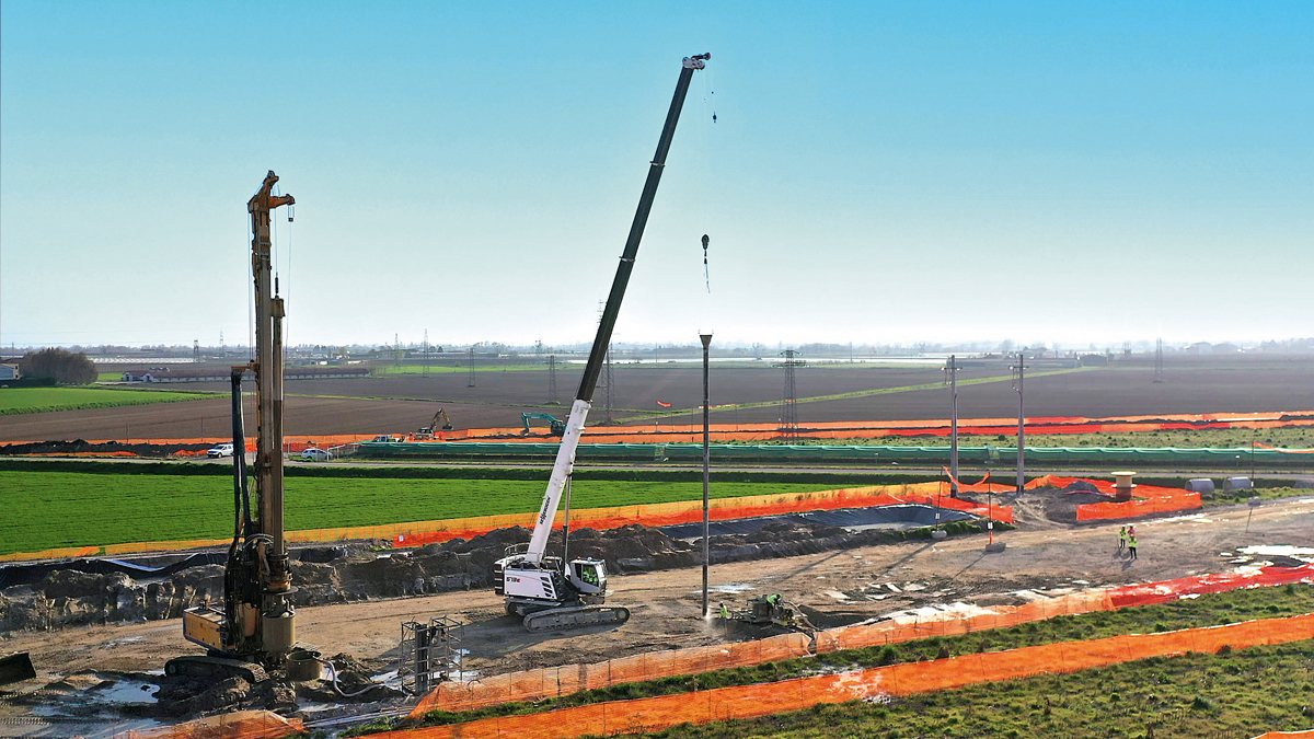 Das italienische Bauunternehmen Fondamenta weist mehr als 30 Jahre Erfahrung im Tiefbau auf und ist hierbei vor allem auf Spezialtiefbau- und Fundamentarbeiten spezialisiert. Im Rahmen des Hochgeschwindigkeits-Bahnprojektes Verona-Padua ist das Unternehmen unter anderem für den Bau der Fibbio-Brücke beauftragt, die mit ihren 2,3 km Länge eine der wichtigsten Viadukte des Abschnitts sein wird. Die drei dabei eingesetzten Krane von Sennebogen wurden vom italienischen Vertriebs- und Servicepartner ESPI Engineering geliefert.