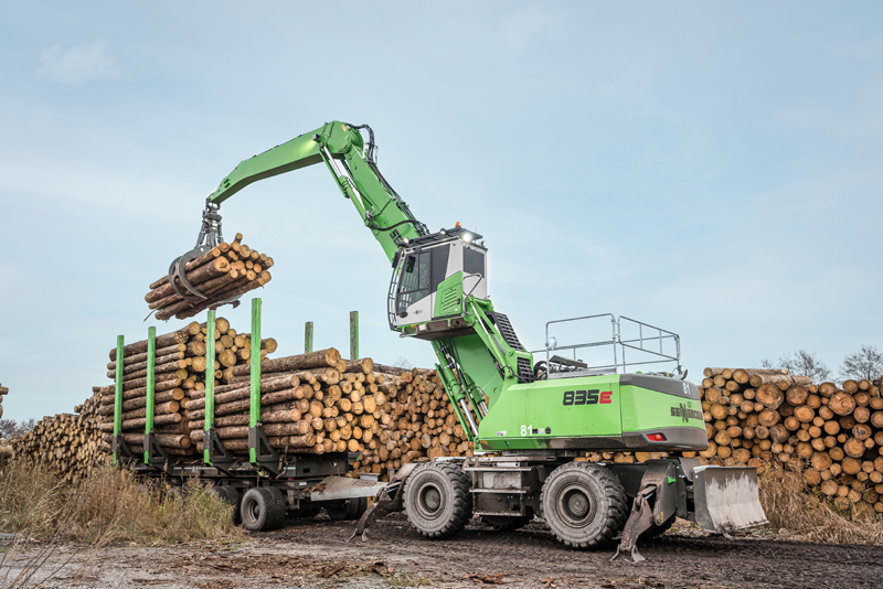 Generell setzt das Unternehmen auf eine nachhaltige Produktion und kraftstoffsparende sowie emissionsarme Umschlaglösungen, die den Weg in eine „grüne Zukunft“ ebnen. Einen wertvollen Beitrag dazu leistet nun auch der 835 E, der zusammen mit dem Vertriebspartner, der SENNEBOGEN Vertriebs GmbH & Co. KG, konzipiert wurde. Ein Mobilunterwagen in einer speziellen Ausführung für Trailer, eine große Single Bereifung und ein für den Holzeinsatz unerlässliches Schutzschild erwiesen sich hier als die ideale Lösung.