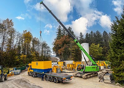 Ausgeliefert wurde der Sennebogen Elektrobagger 835 E von Schlüter für Baumaschinen in Person von Gebietsverkaufsleiter Michael Köhnlein. Das mittelständische Familienunternehmen sieht sich nicht nur als Händler, sondern insbesondere auch als Dienstleister mit erstklassigem Kundenservice. Die nachhaltige Zufriedenheit des Kunden steht bei Schlüter für Baumaschinen im Mittelpunkt, individuelle Bedarfe und Wünsche werden gemeinsam in marktorientierte Leistungen umgesetzt.